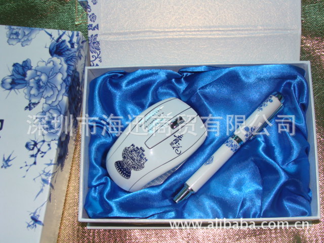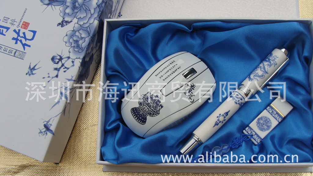 2012青花新款商务套装 青花瓷无线鼠标U盘四件套 青花礼品套装