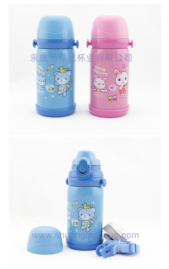 小额批发吊带儿童卡通多用水壶 不锈钢真空保温杯 学生运动水壶