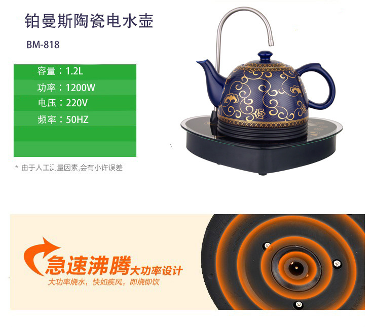 厂家直销!铂曼斯原装正品紫荆花自动抽水触摸静音壶BM-819