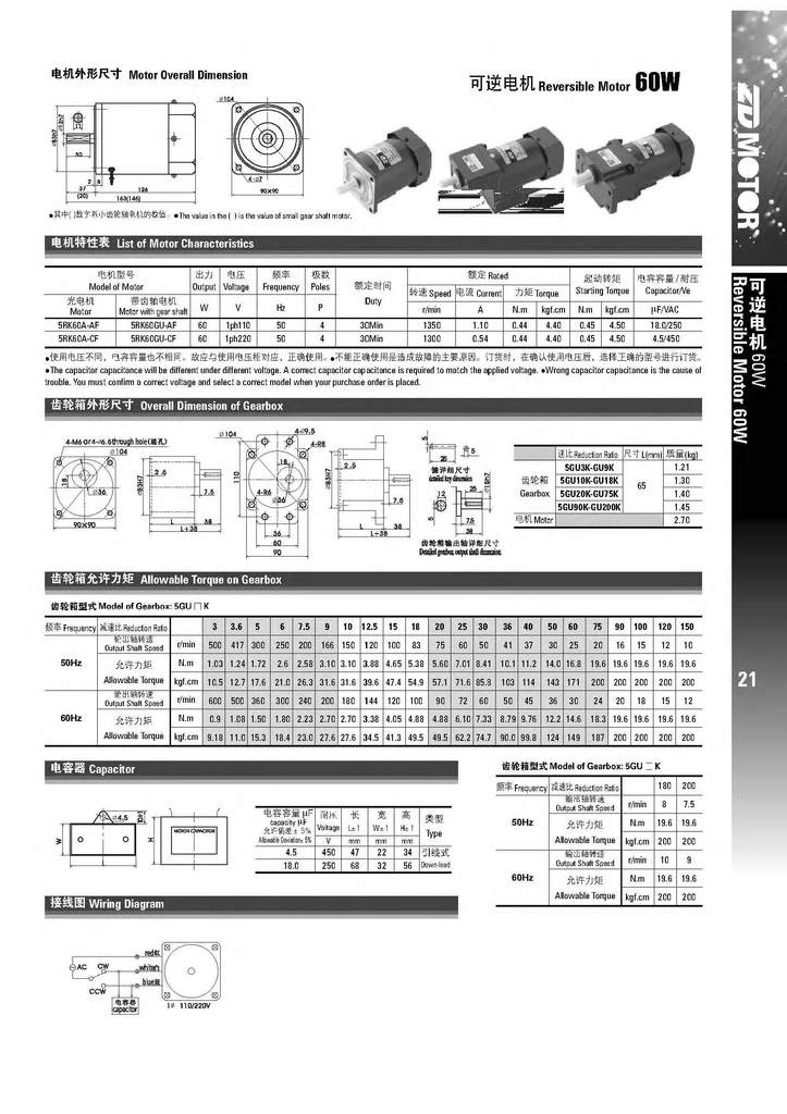 中大品牌5IK60GN-C,5RK60GN-C,5IK60RGN-C齿轮减速电机马达