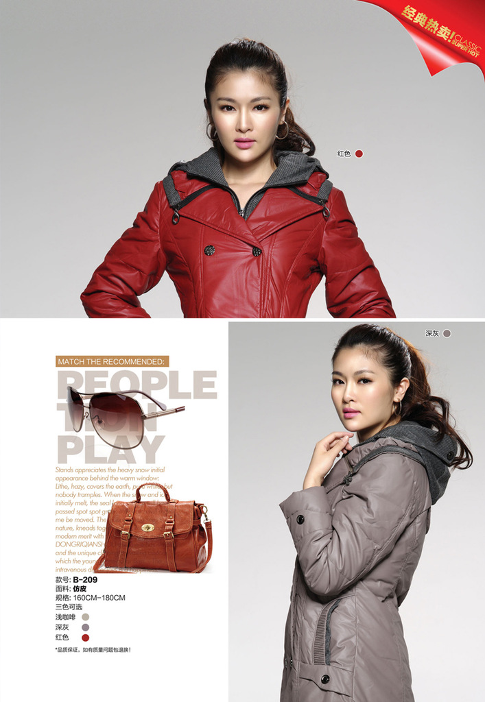 女中长款仿皮拼羊绒皮装拼色保暖羽绒厂家直销低价批发 B-209