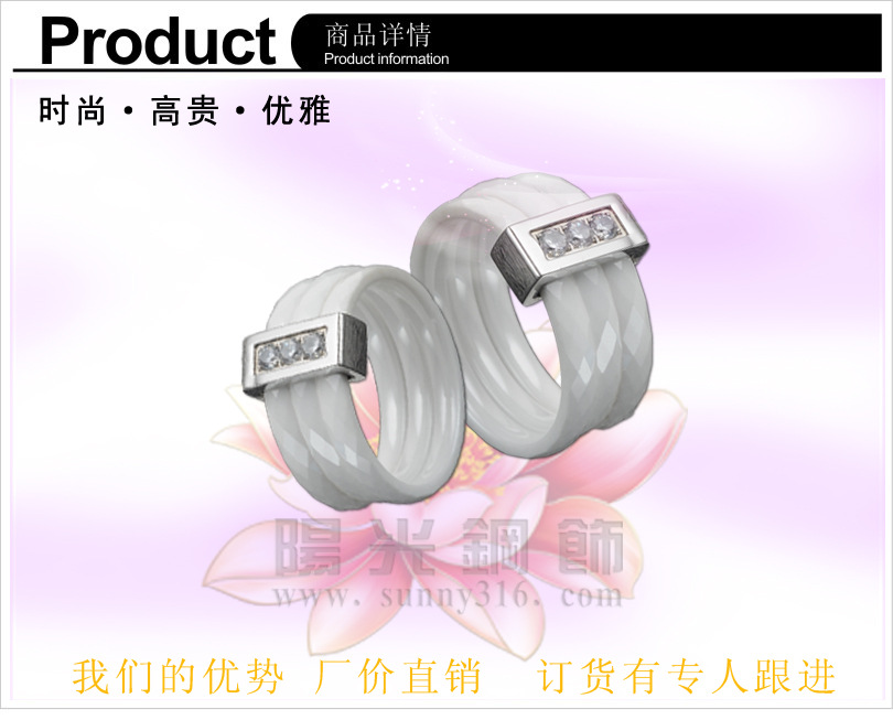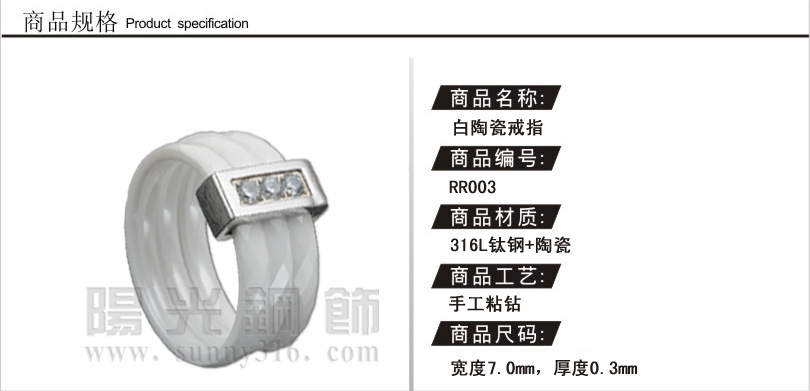 经销批发 供应韩式新款 RR003 白陶瓷不锈钢戒指