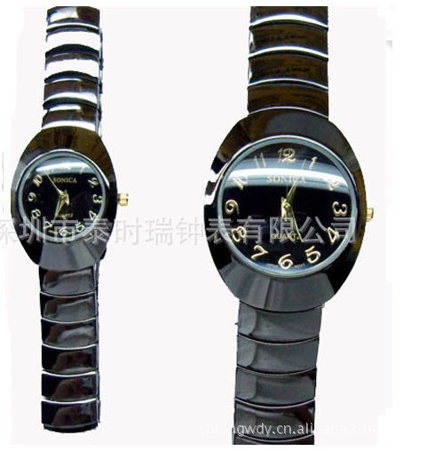 钢间陶瓷手表带凸口 蝴蝶双按扣厂家定制批发 钢间陶瓷表带17mm