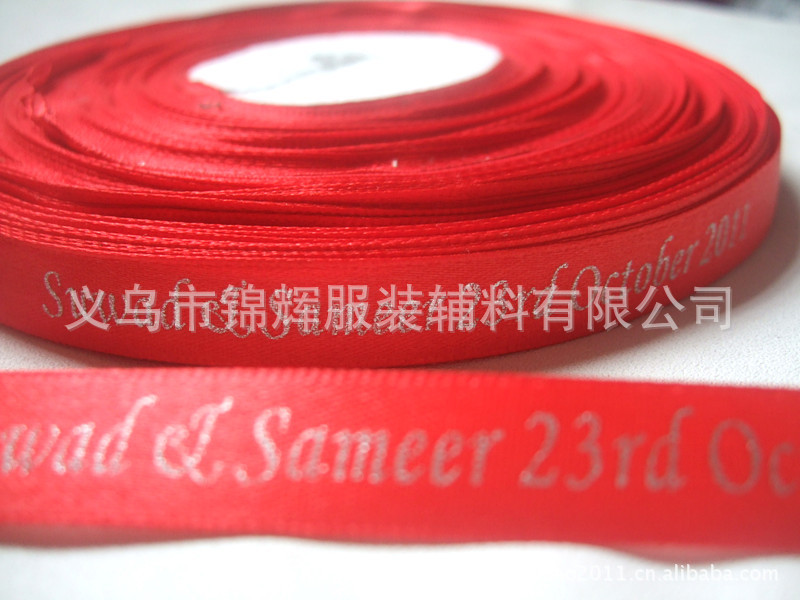 4分(1.2cm)宽宝蓝色双金边缎带印字 缎带印金