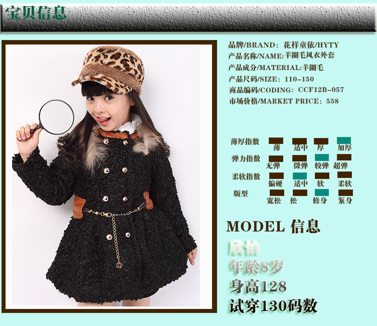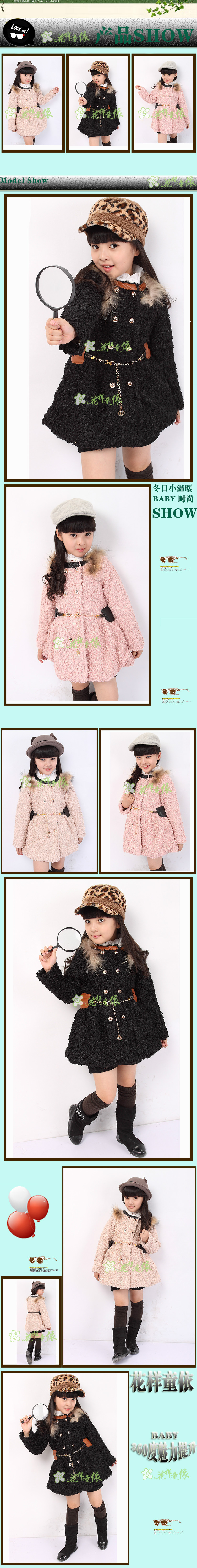 2012童装年货备货 冬款女童中大童 羊圈毛加厚加里风衣外套