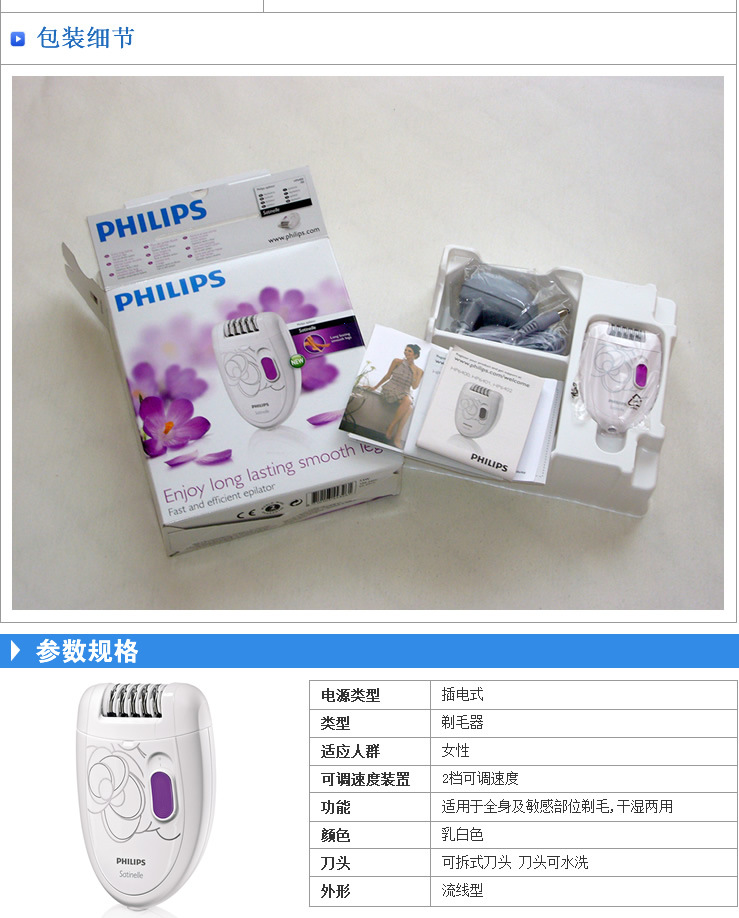 Philips/飞利浦脱毛器 HP6400 剃毛器 水洗 2档速度 女士必备