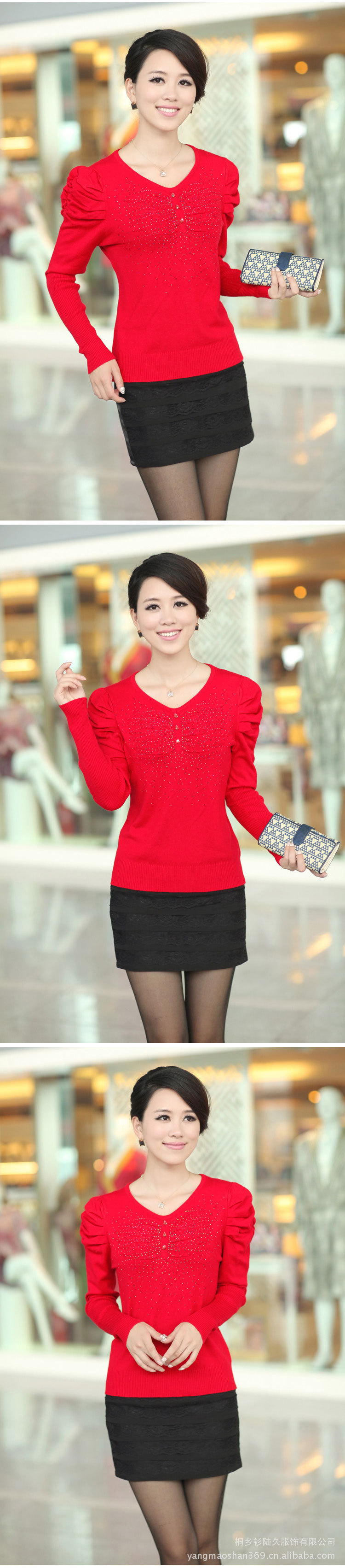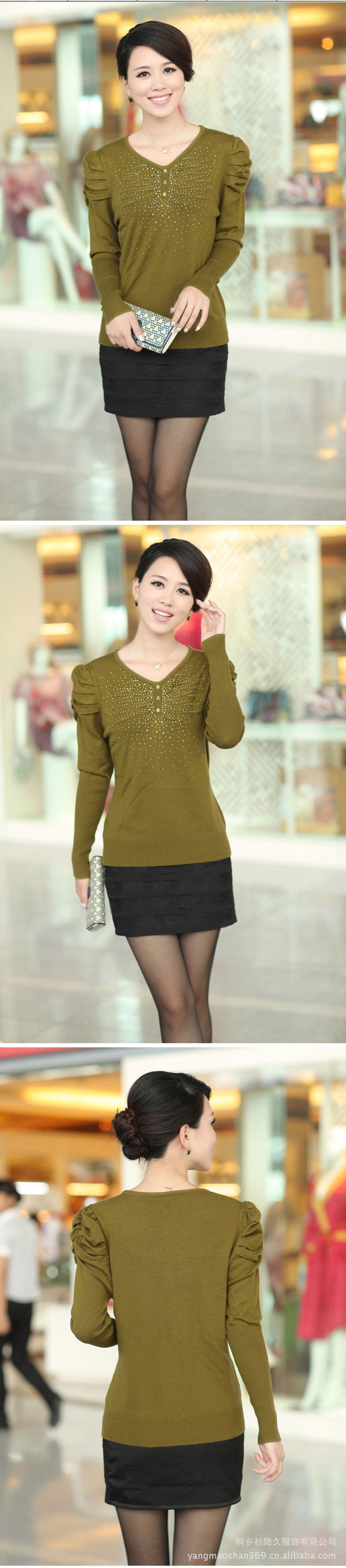烫钻长袖针织衫 打底衫 针织长袖外套毛衣批发9613