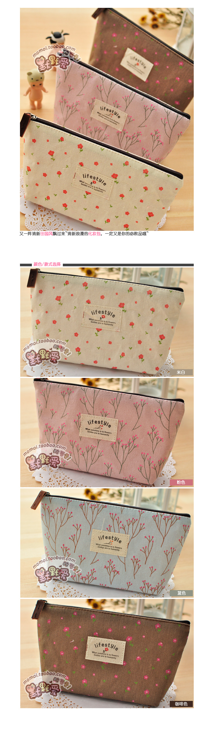 H147厂家贴牌棉布化妆包 礼品小碎花收纳化妆包