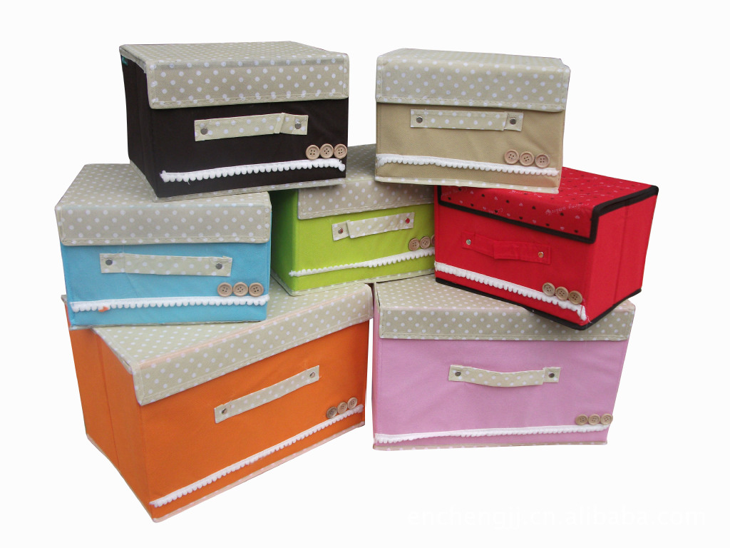 恩诚 梅红色26*20*17CM无纺布扣扣化妆品收纳盒 收纳箱 批发