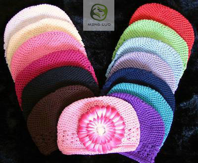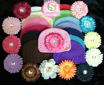 秋冬时尚新款 多色多款 圆顶花朵童帽 手工针织帽 宝宝亲子帽
