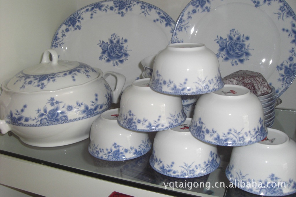 56头蓝玫之夜骨质瓷,5A健康用瓷餐具