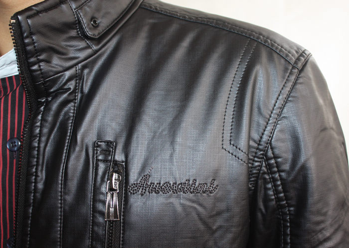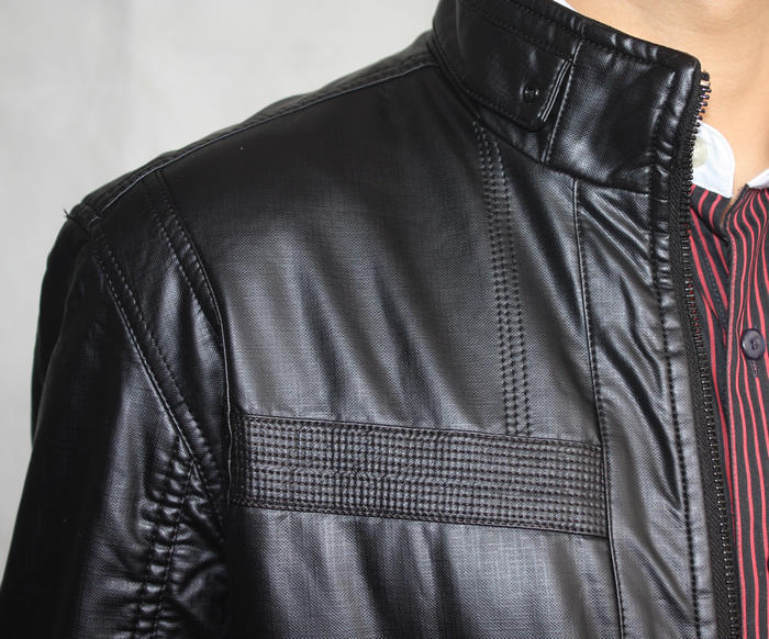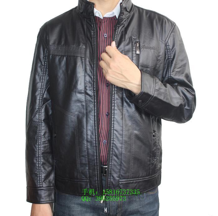 联邦啄木鸟冬装厚款男士皮衣皮夹克立领外套加棉1183-7