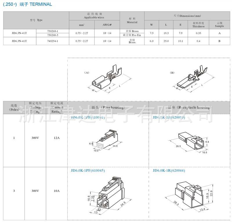 6.3直插连接器 插簧 插片 端子 胶壳 汽车接插件