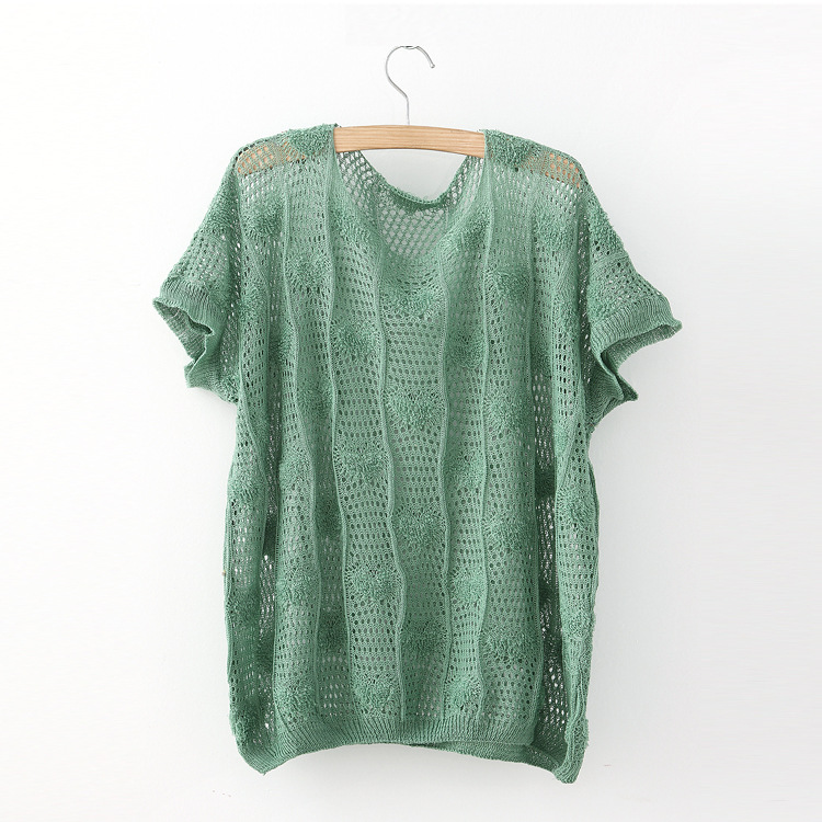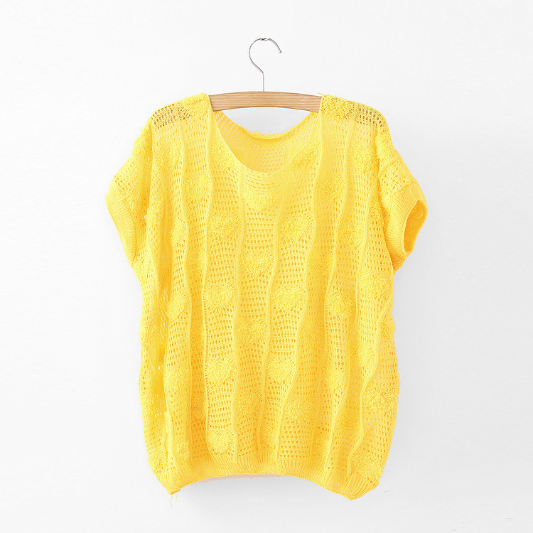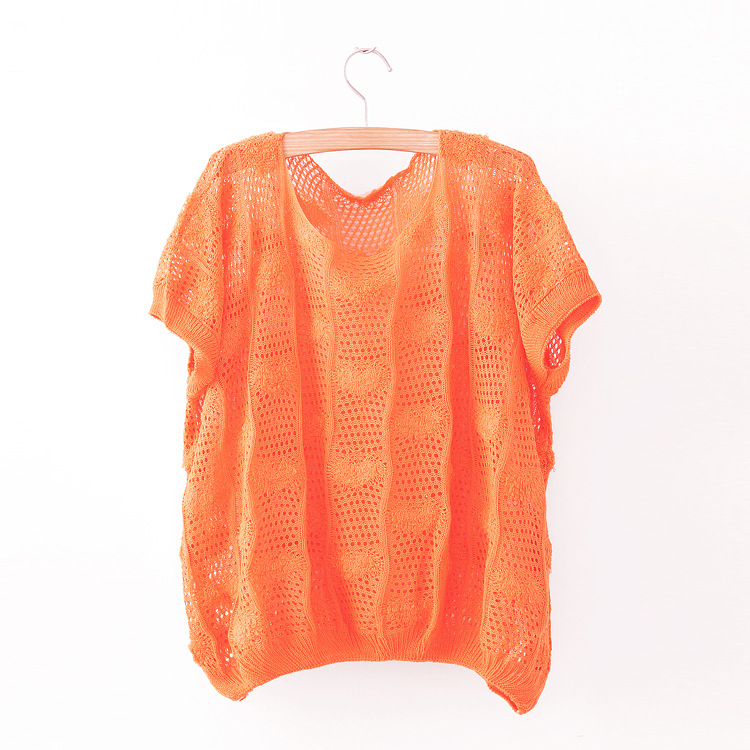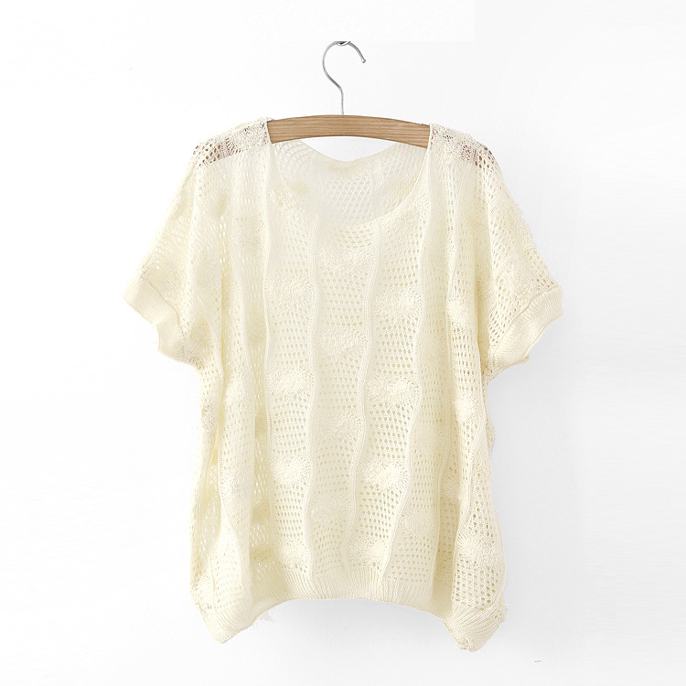 新款2012秋装女装宽松袖圆领薄款镂空女式针织衫套衫