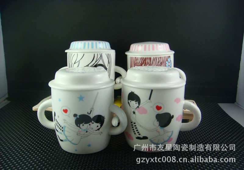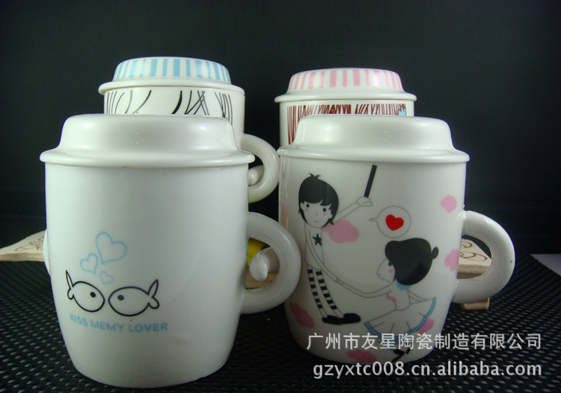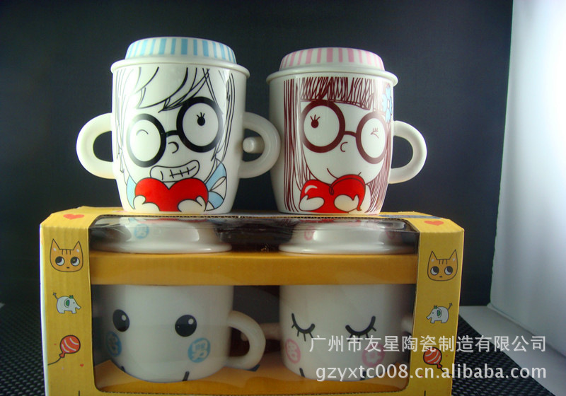 批发创意陶瓷杯 卡通情侣杯 热销咖啡杯 陶瓷马克杯 情侣咖啡杯