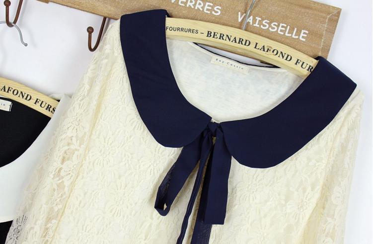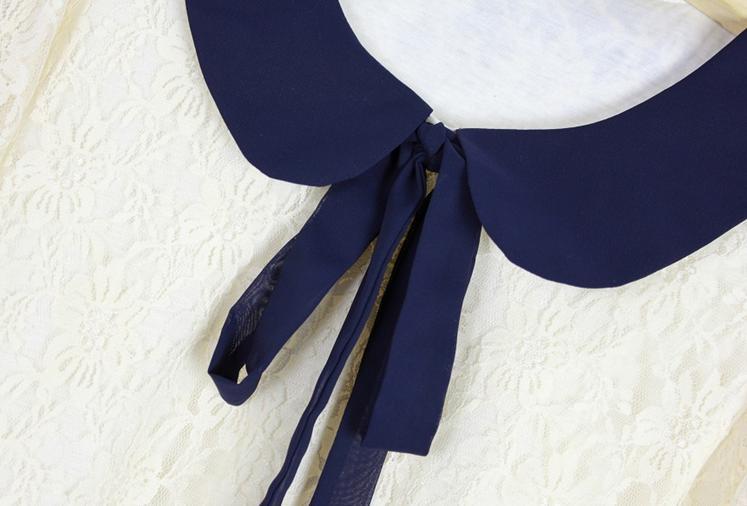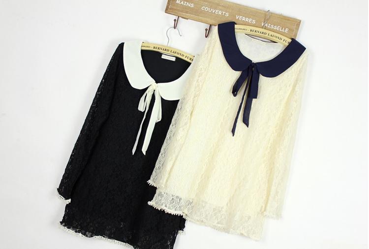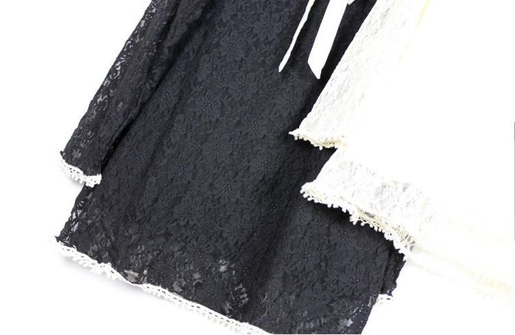 日系甜美全蕾丝娃娃雪纺蝴蝶结长袖连衣裙
