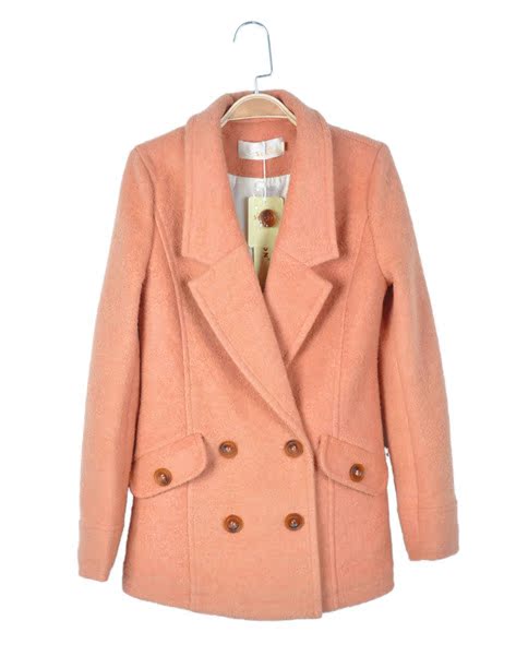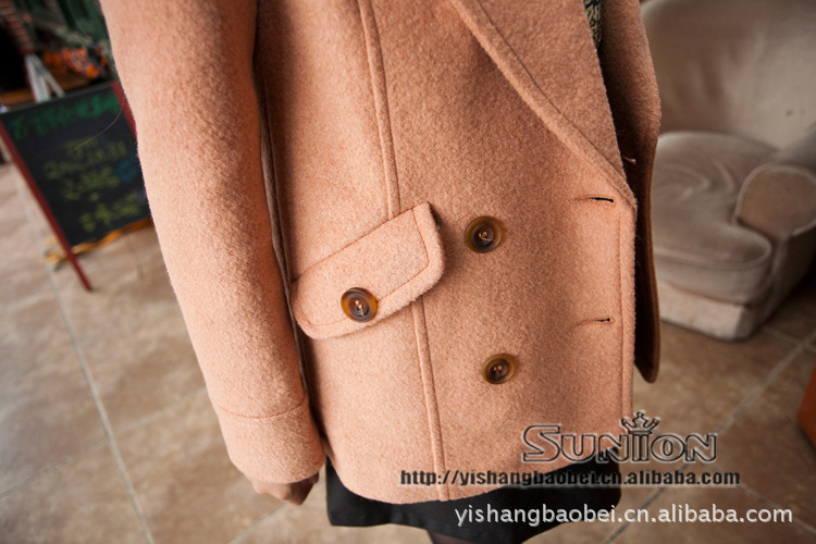 小额批发 秋冬季新款日系女式双排扣西装领红驼色羊毛呢大衣外套