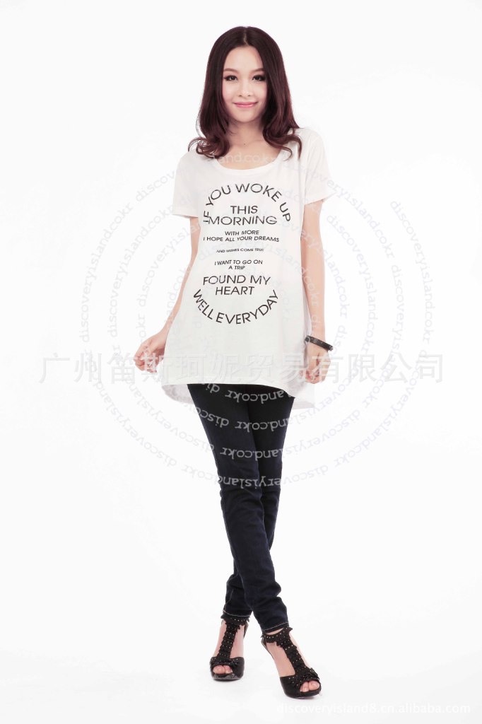 夏季宽松休闲 字母组 DiscoveryIsland 长款女装短袖T恤