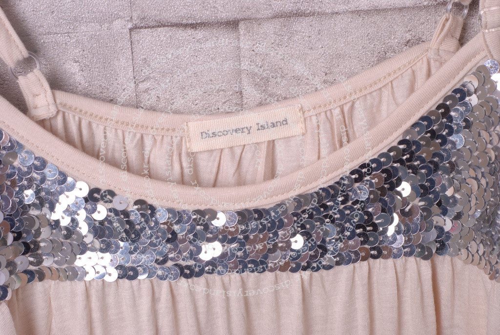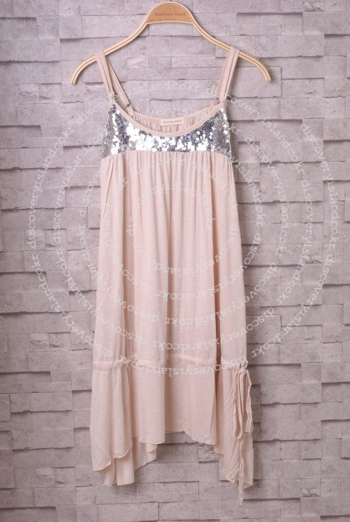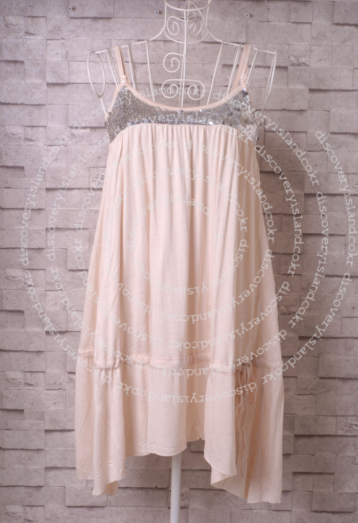 Discovery Island 原厂 手工珠片 纯色丝光棉吊带女装连衣裙