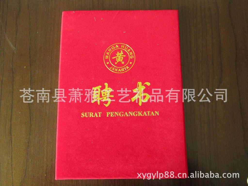 厂家热销高档绒布烫金荣誉证书,聘书,捐赠证书