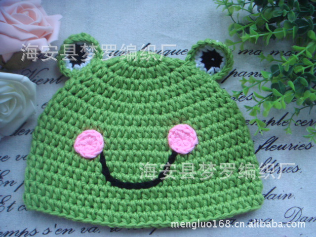 童帽批发 手工钩织 动物造型 青蛙宝宝帽 儿童帽