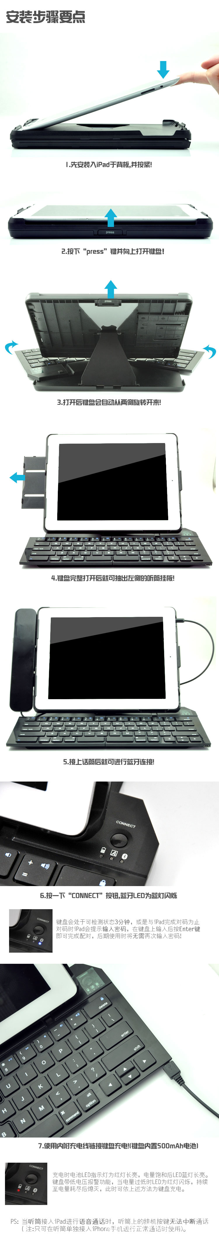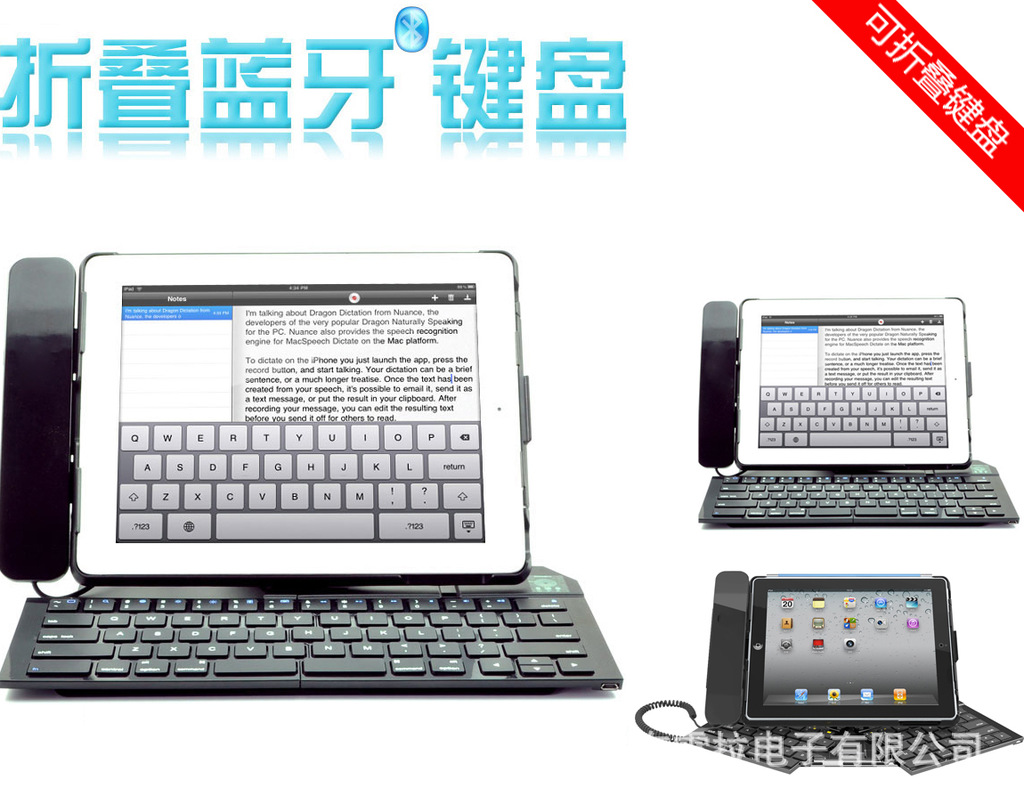 多功能 ipad折叠蓝牙键盘 带听筒的蓝牙键盘