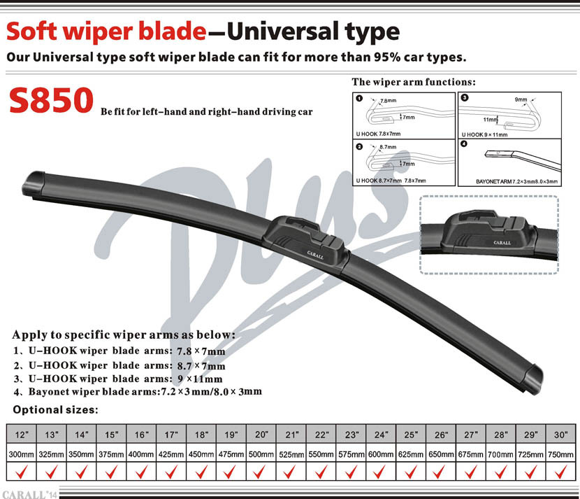 S850 汽车通用型 无骨雨刮片 无骨雨刮片