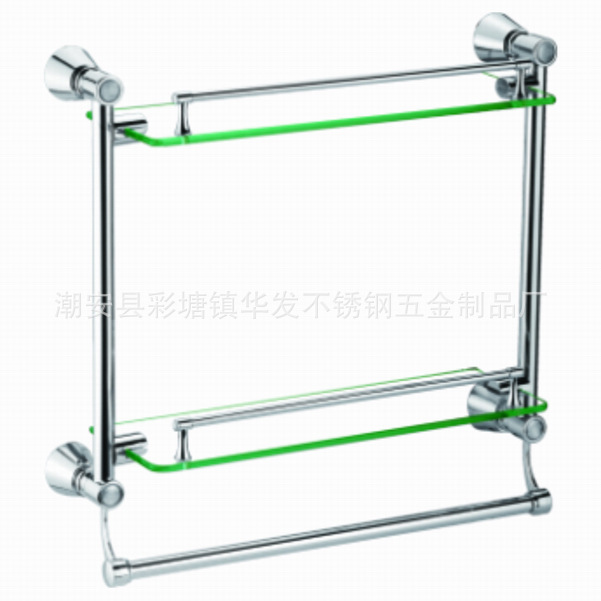 带杆双层玻璃置物架(322玻璃托盘400mm,毛巾杆,浴室架,角落架)