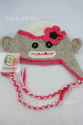 批发 可爱大嘴猴动物造型 针织帽 女童针织儿童帽 婴儿帽