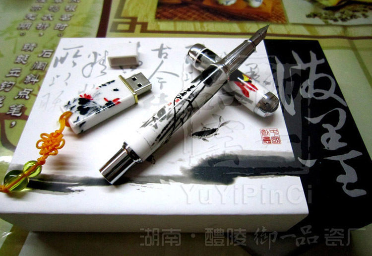 厂家特价批发,醴陵陶瓷,泼墨陶瓷笔泼墨U盘,中国风礼品,办公礼品