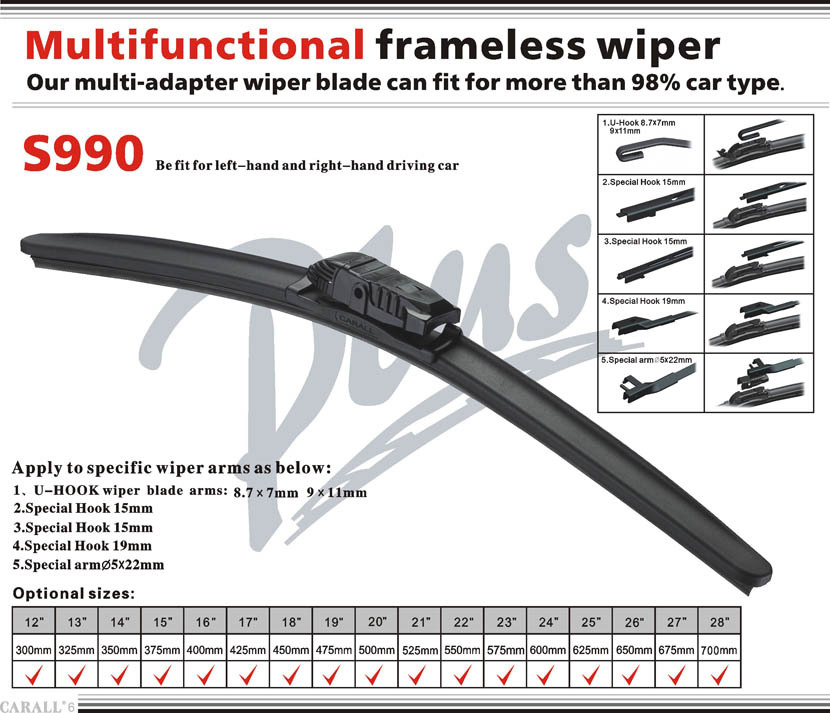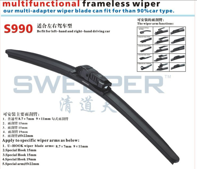 新款产品S990万能型双钢片无骨雨刷片/雨刮片/雨刷器