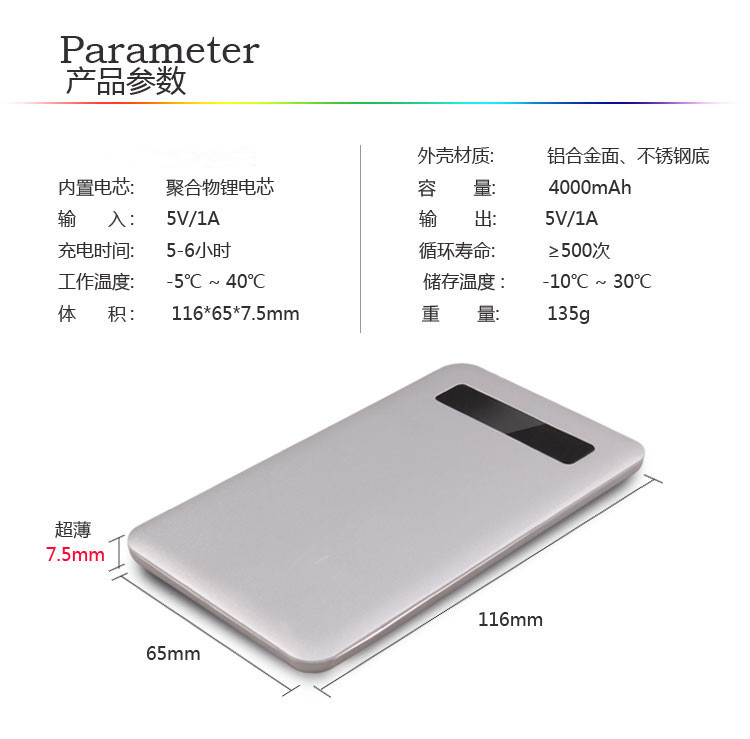 超薄移动电源 新款上市 移动电源 触摸操作 4000mAh