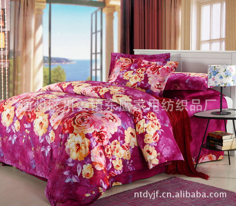 热销推荐 60活性印花全棉四件套床品套件 婚庆四件套床品套件