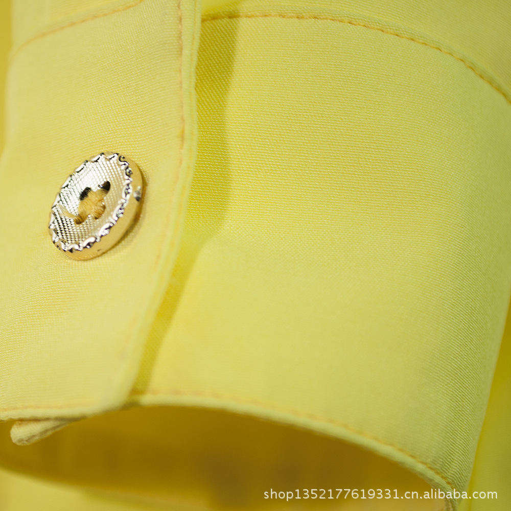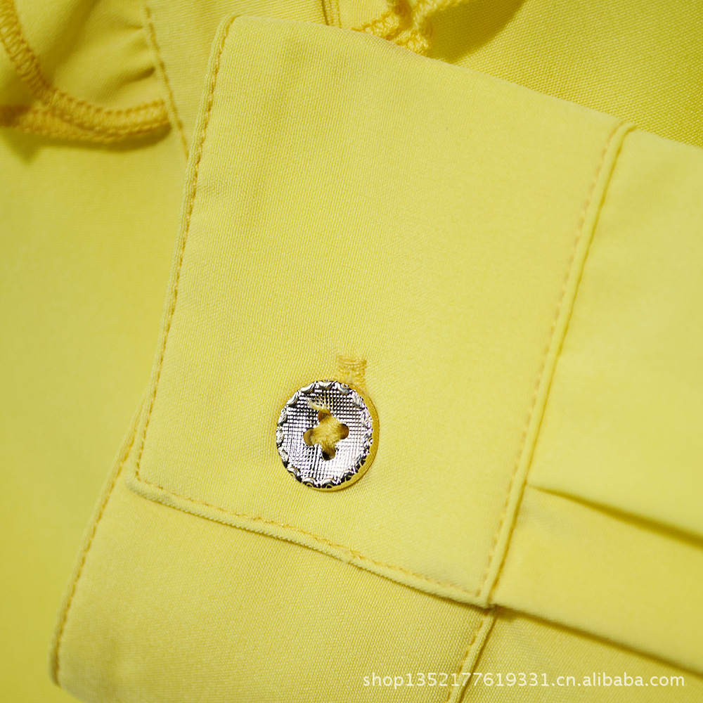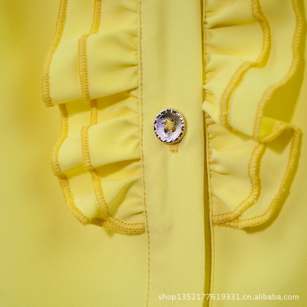 厂家直供黄色翻领波点短袖polo感纯棉小衬衣休闲