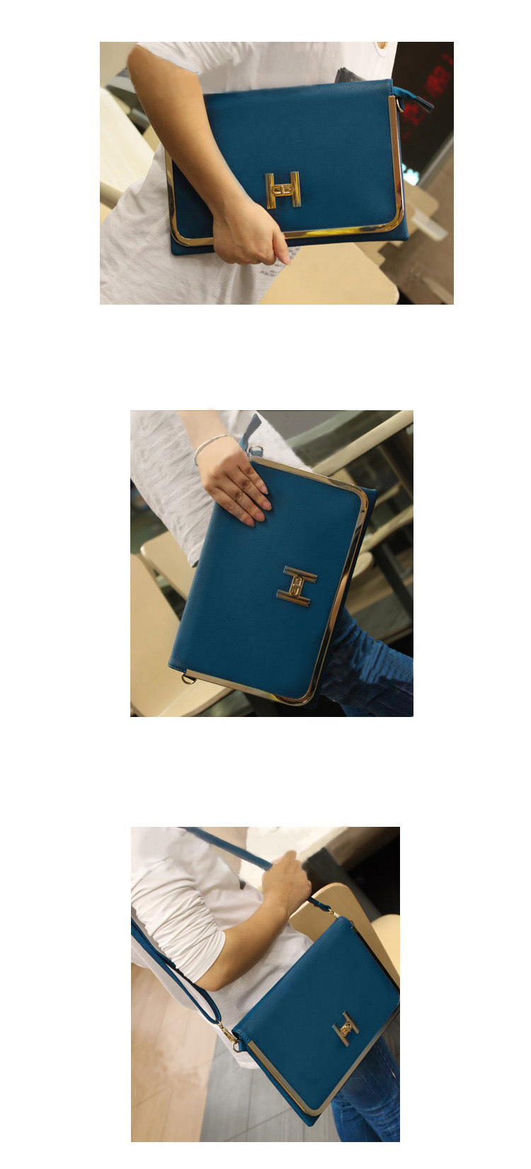 中高档包包2013新款复古公文定型包手包信封H扣小包女包 S83