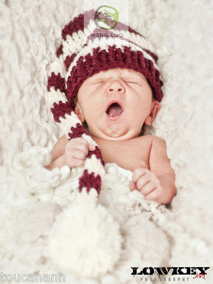 厂家定制 条纹 长尾巴 雪白大毛球 针织宝宝帽 DM17