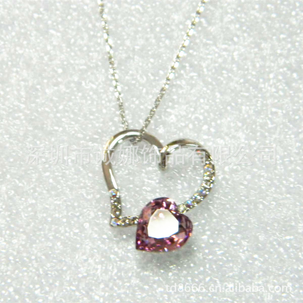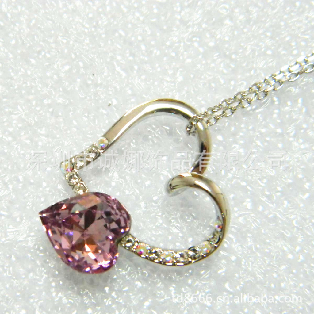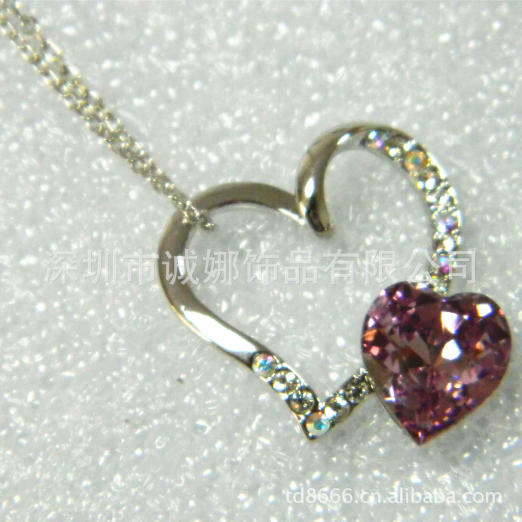 合金流行 项链 心形天然水晶 吊坠 时尚美丽 宴会配饰 批发