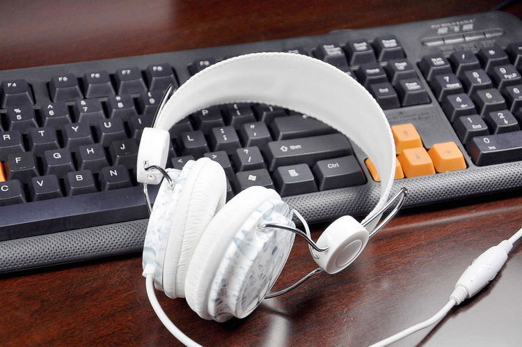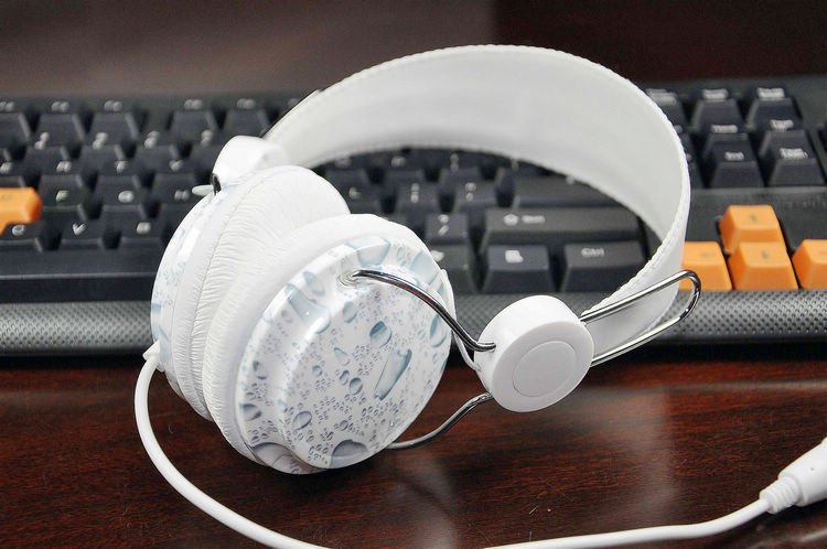 厂家直供电脑耳机 线上带咪 水转印耳机