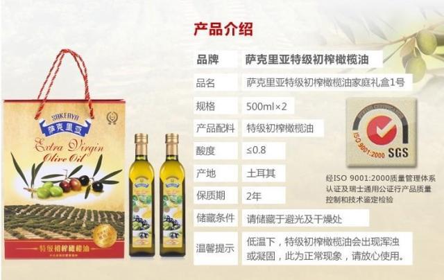 萨克里亚原装进口特级初榨橄榄油(家庭礼盒1号)500ml*2/1*10盒