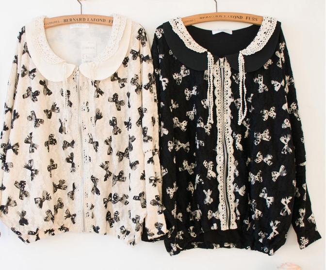 外贸批发 个性蝴蝶结图案宽松长款蕾丝衫外套批发 外套