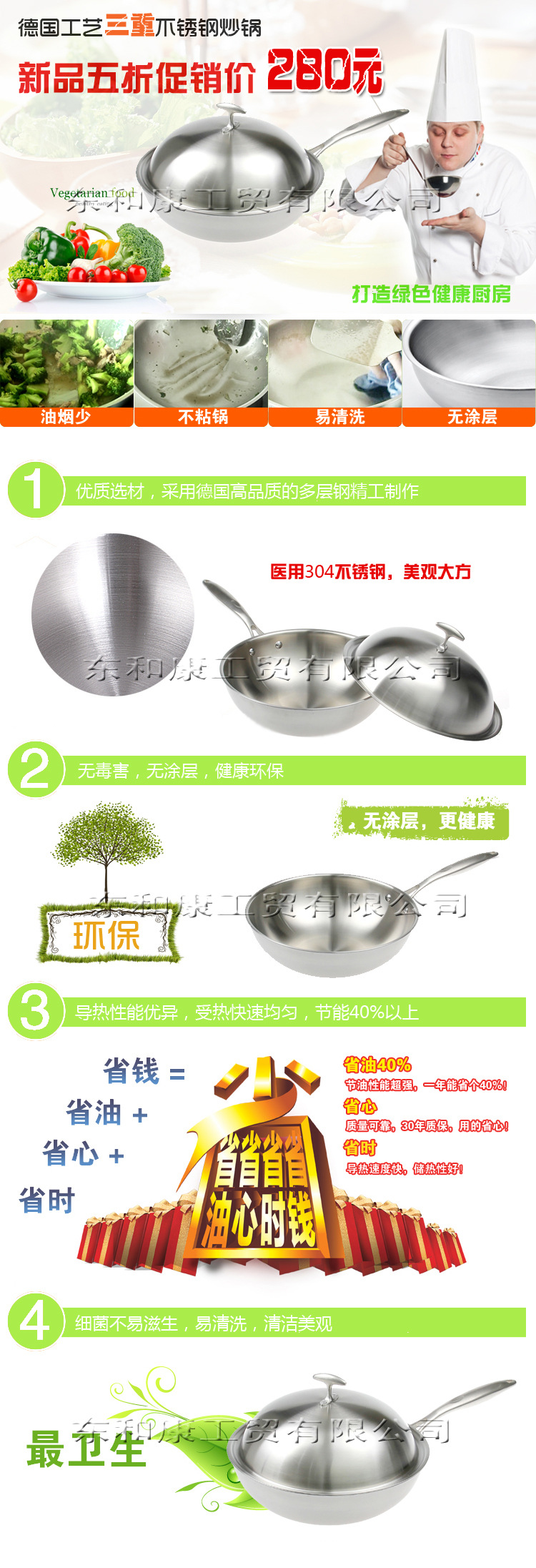 德国ESKO不锈钢炒锅不粘锅炒菜锅 电磁炉燃煤气专用家用锅具
