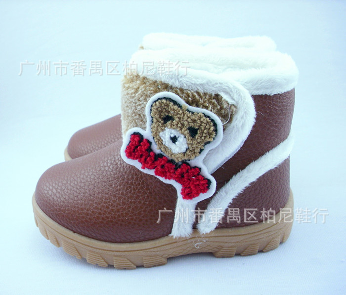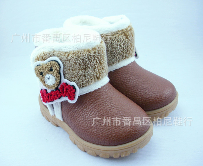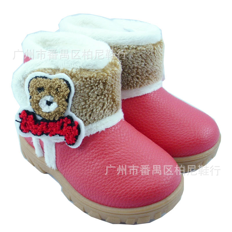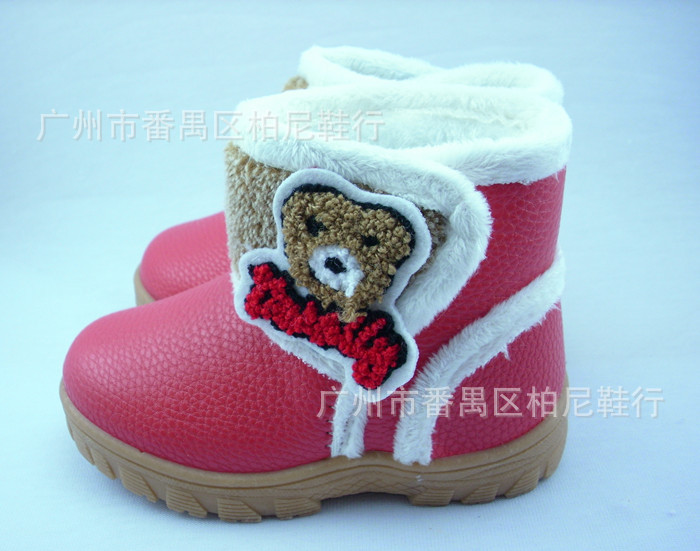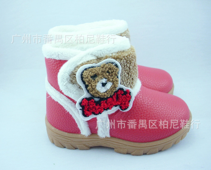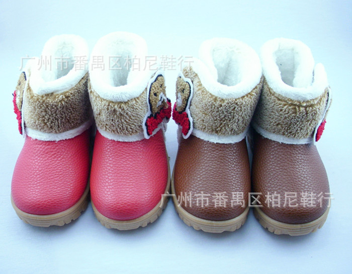 冬季保暖棉鞋 爆款儿童雪地靴 长毛绒短靴魔术贴 大棉靴子批发
