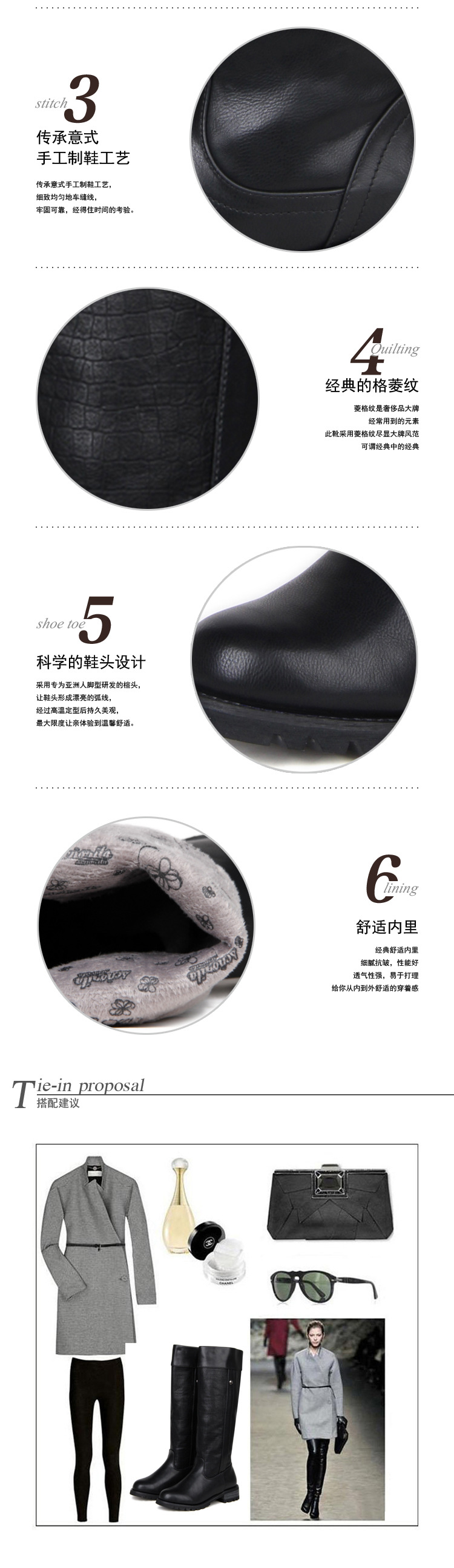 LESELE莱思丽冬新款黑色牛皮加绒女靴子 圆头简约粗高跟短靴