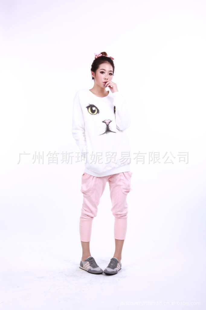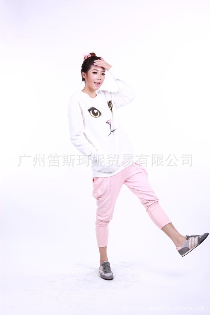 韩国discoveryisland新品 拼接淑女甜美系纯棉加厚韩版休闲哈伦裤