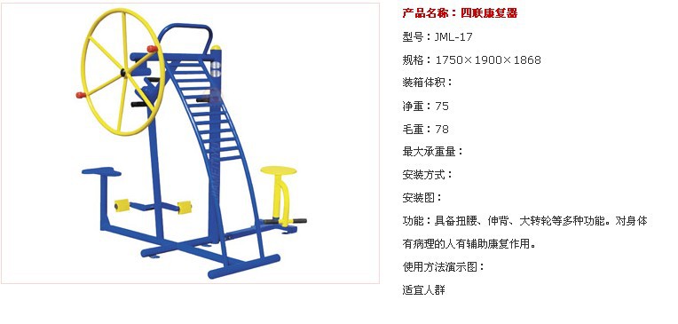 云南昆明/户外健身路径/四联康复器/小区健身器材/佳美JML-17