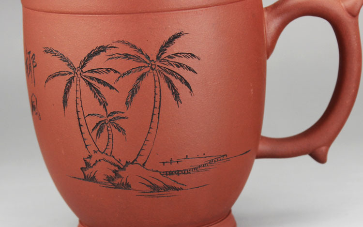 紫来顺 宜兴紫砂杯办公茶杯 椰风盖杯 清水泥 350cc 厂家直销