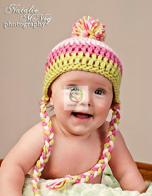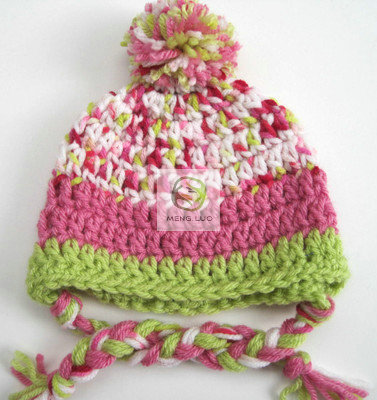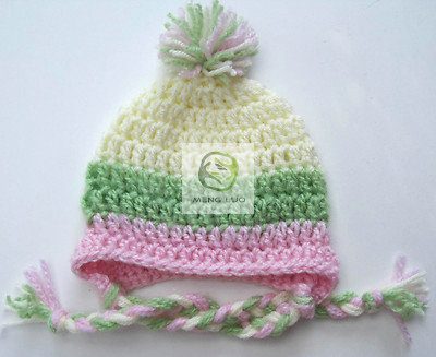 条纹 毛球有帽带 宝宝保暖帽 儿童针织帽