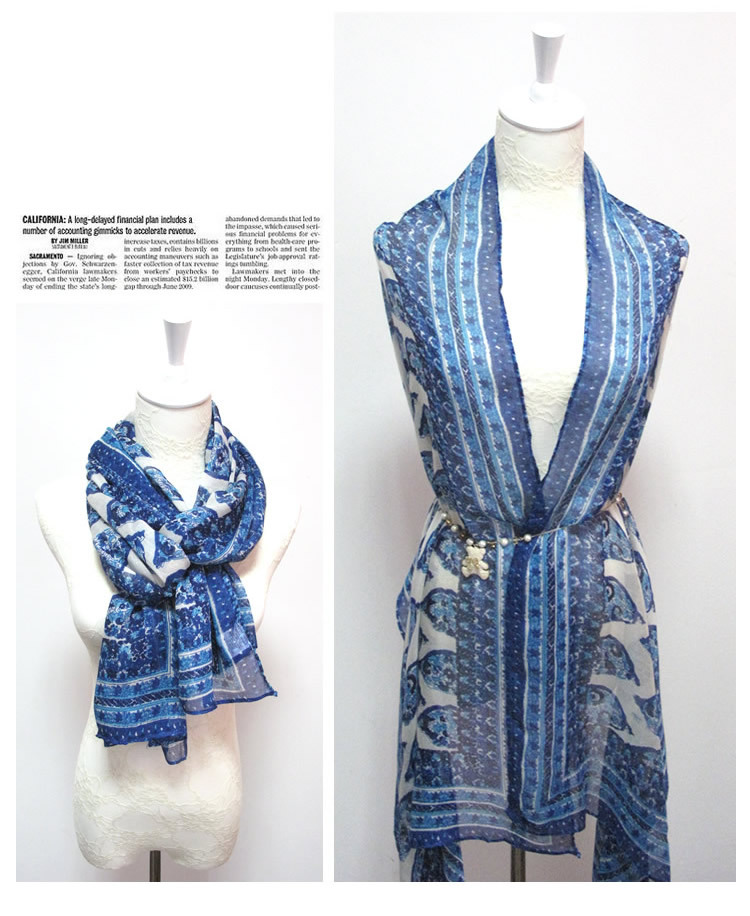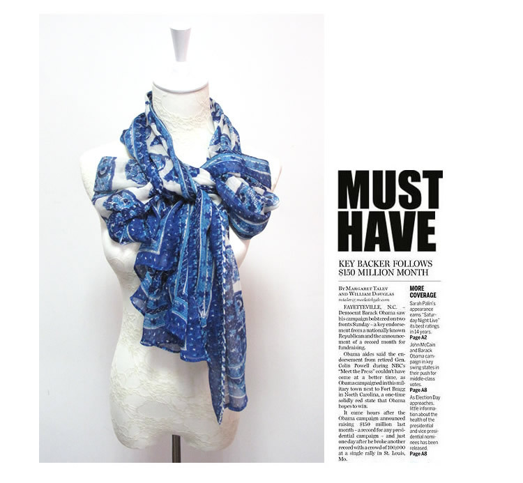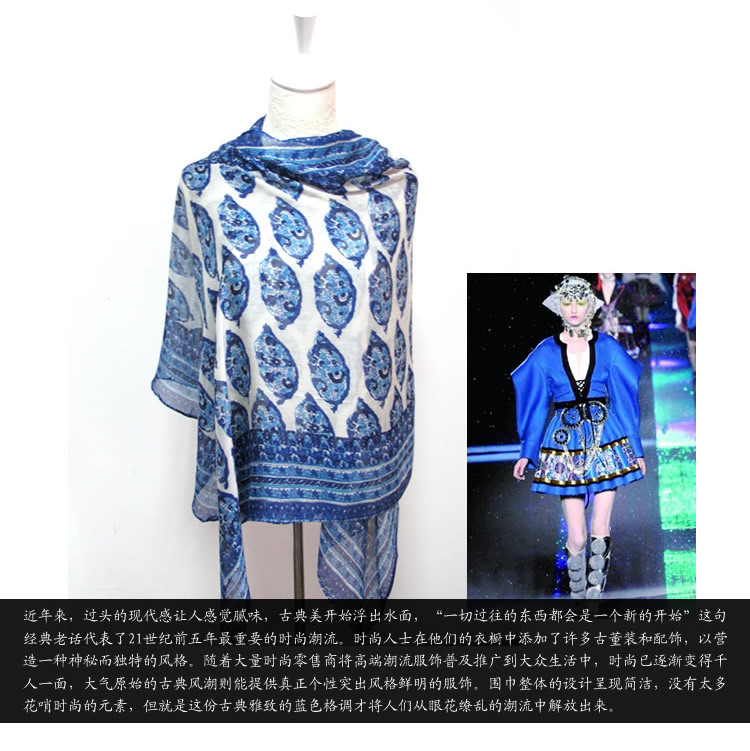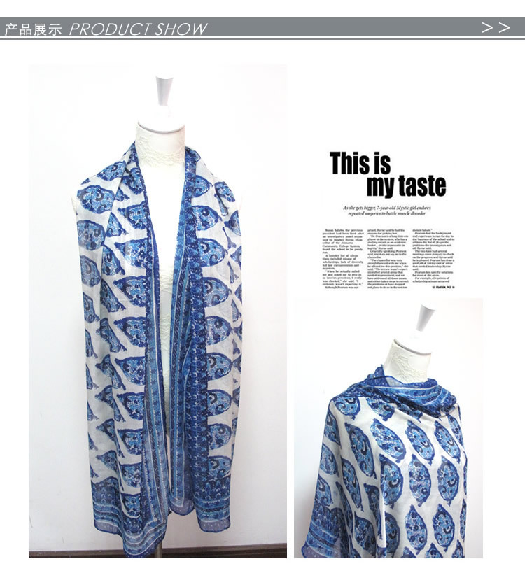 时尚新款 蓝色腰果印花围巾 围巾批发 围巾定做 厂家直销 外贸