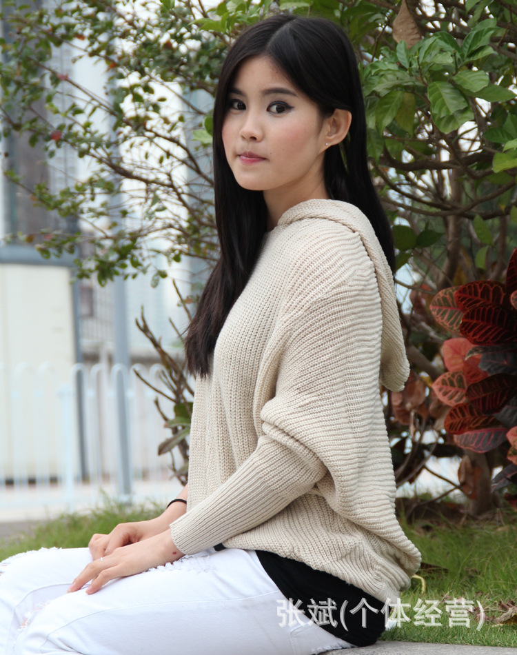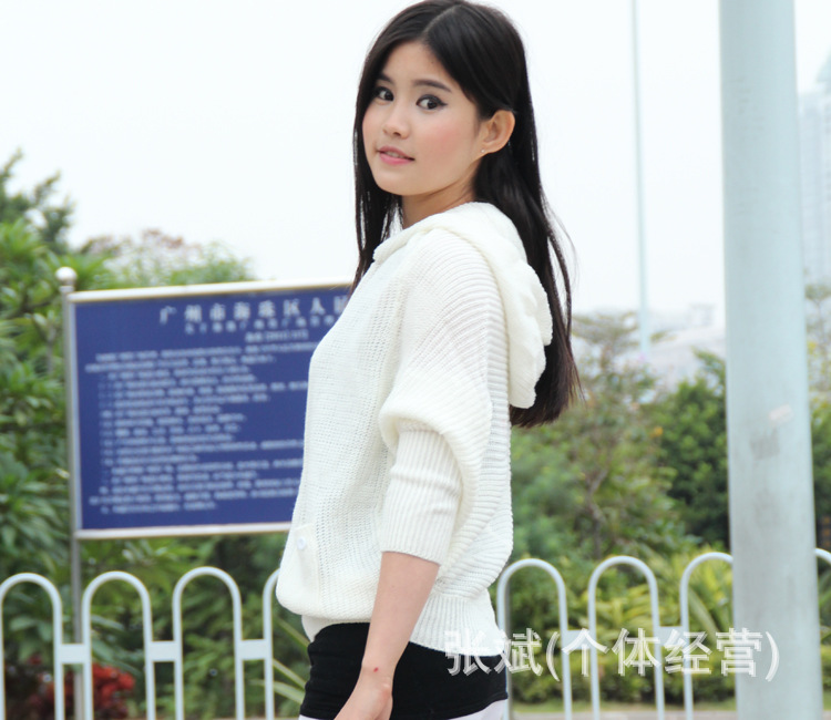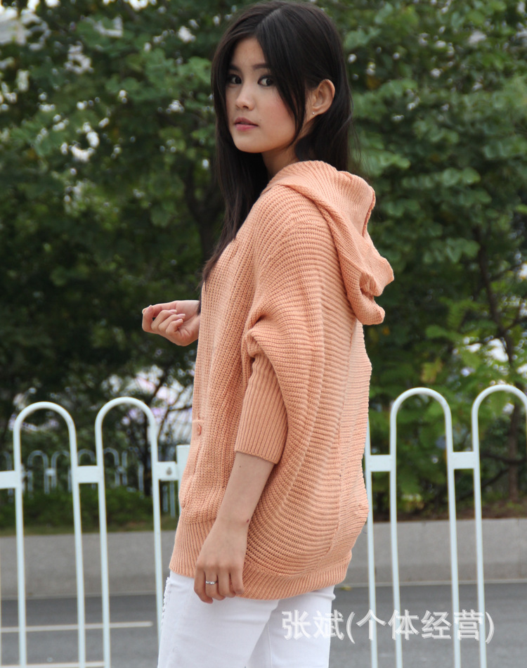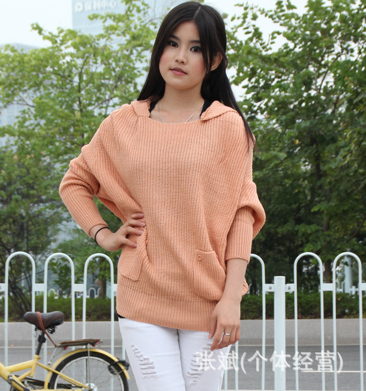 秋冬新款韩版毛衣外套连帽斗篷宽松大毛衣外套 袖 一件代发