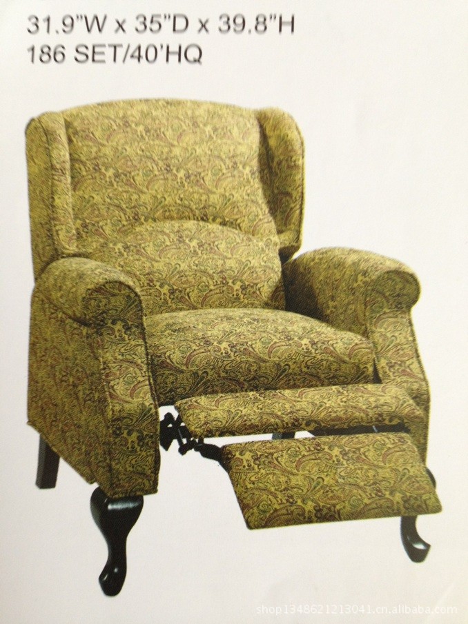 出口美国提花布四个木脚海绵填充带斜躺功能皇冠椅recliner